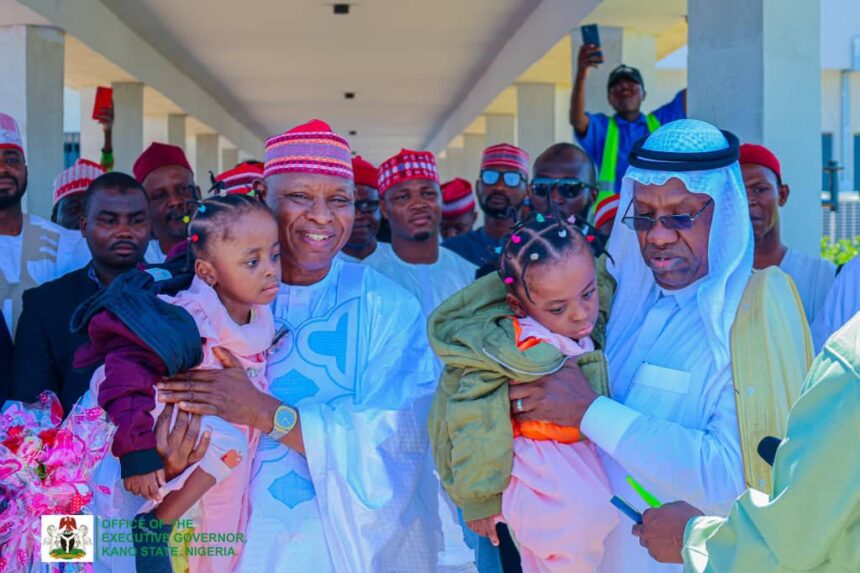 The twins, who had been in Saudi Arabia for two years, were welcomed on arrival at Mallam Aminu Kano International Airport by Abba Yusuf, governor of Kano.