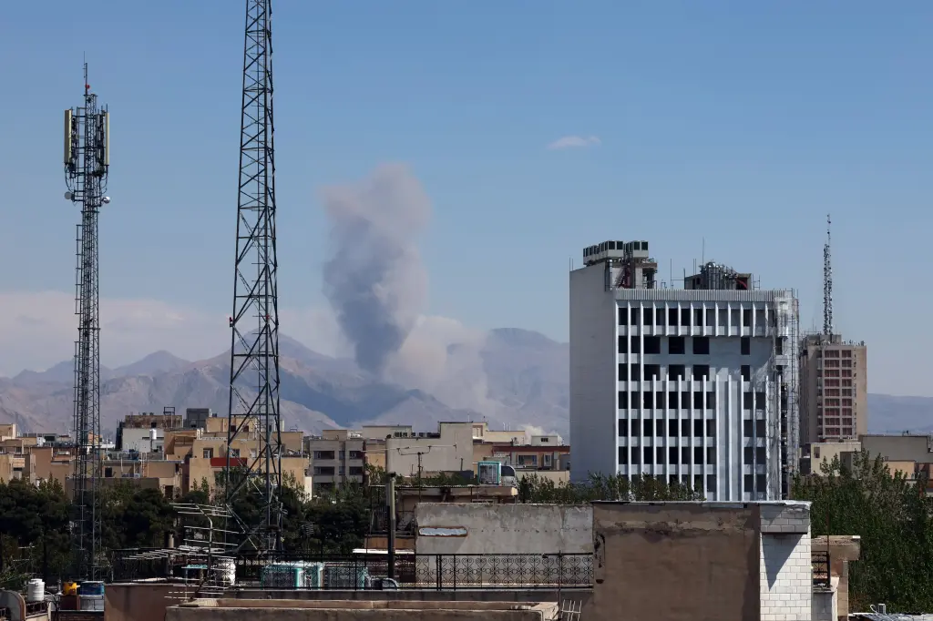 Smoke rising from a US-Israeli airstrike in Tehran on April 7